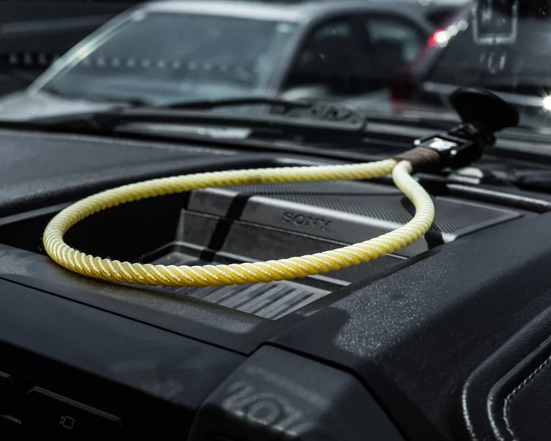 Custom-made hat mounts that work in various cars and trucks. These mounts are made with genuine lariat rope and hold their shape very well because of the stiffness of the rope. They mount to the windshield or dash with a suction cup.