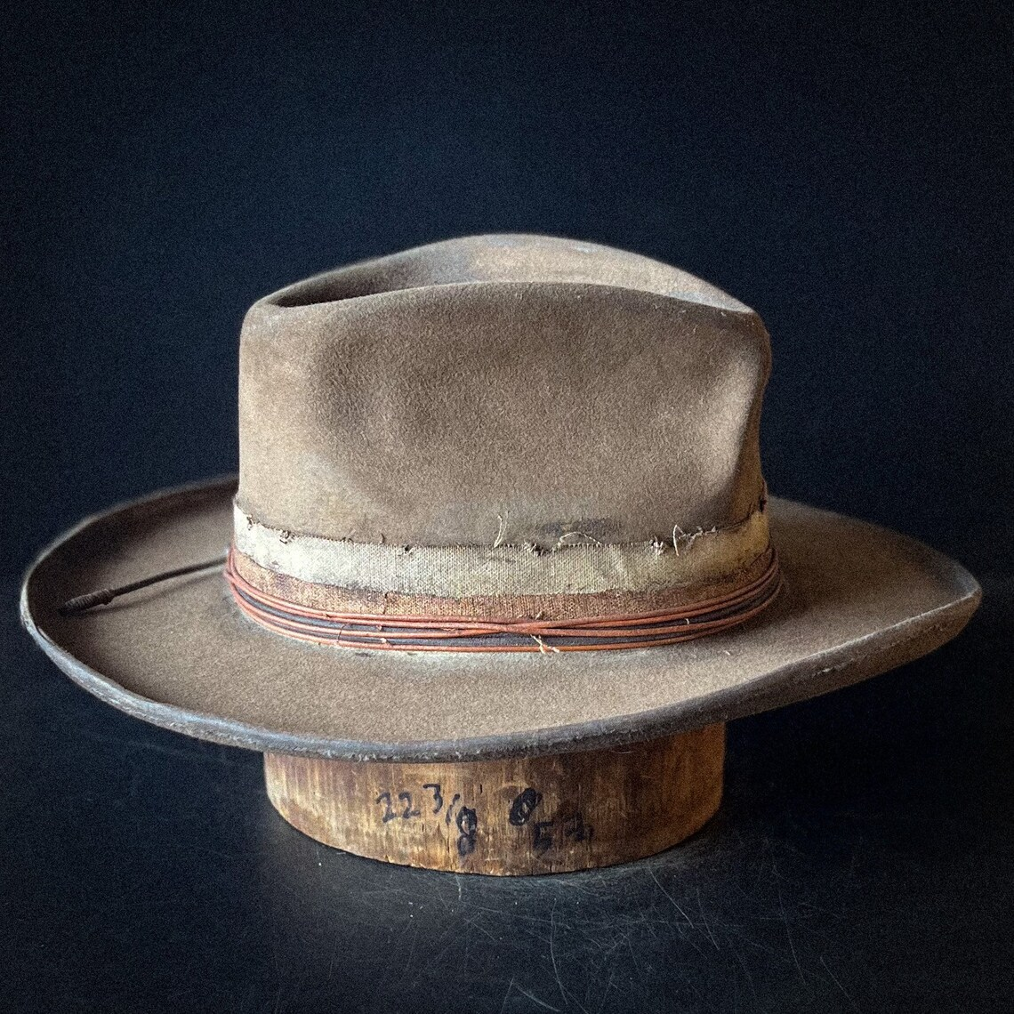 The “Rowdy Captain” size 7 1/4 is a 100% Wool Felt, Western weight (210g) high quality hat. Thick and durable and made to last a lifetime.