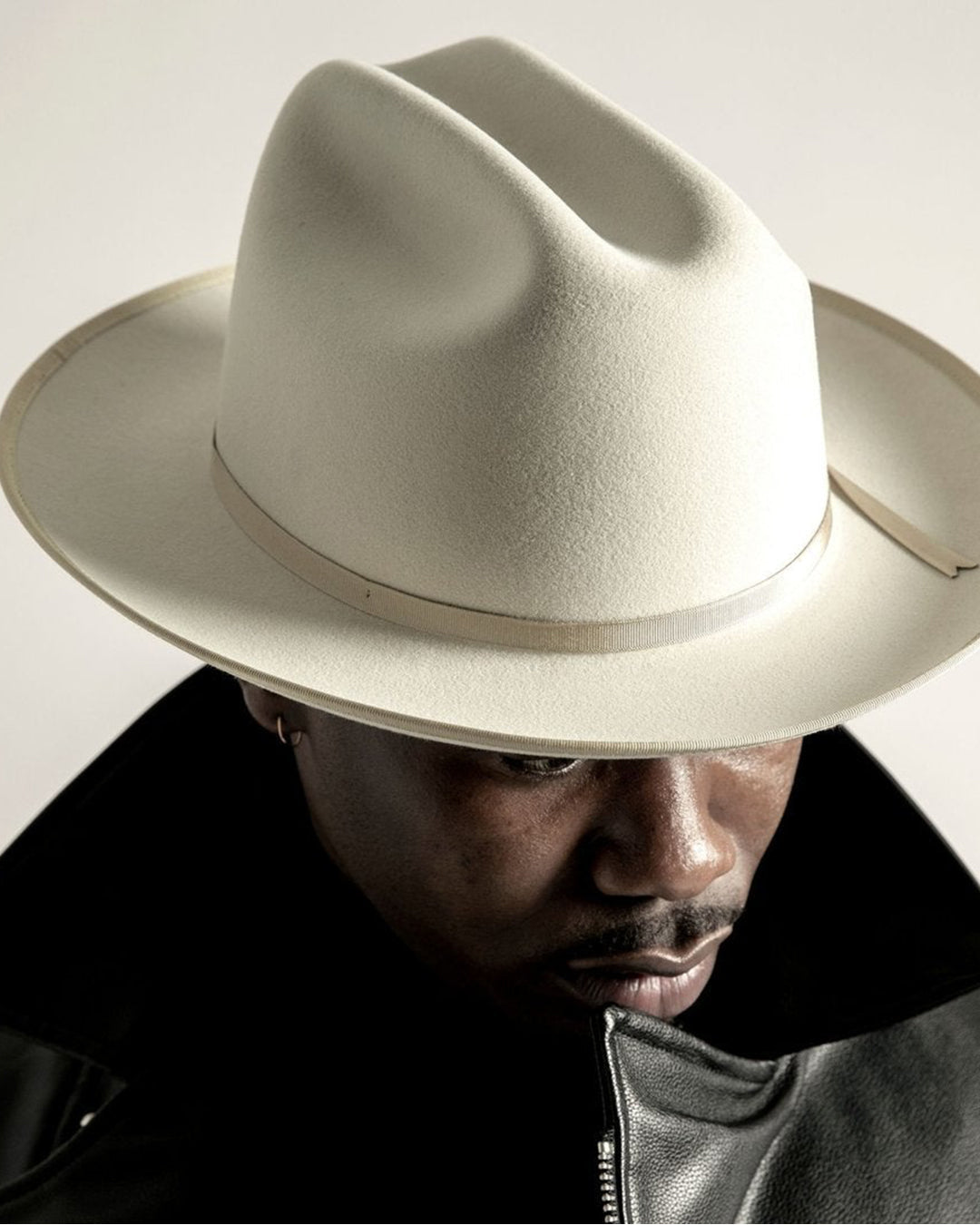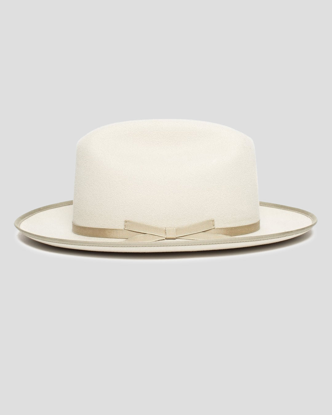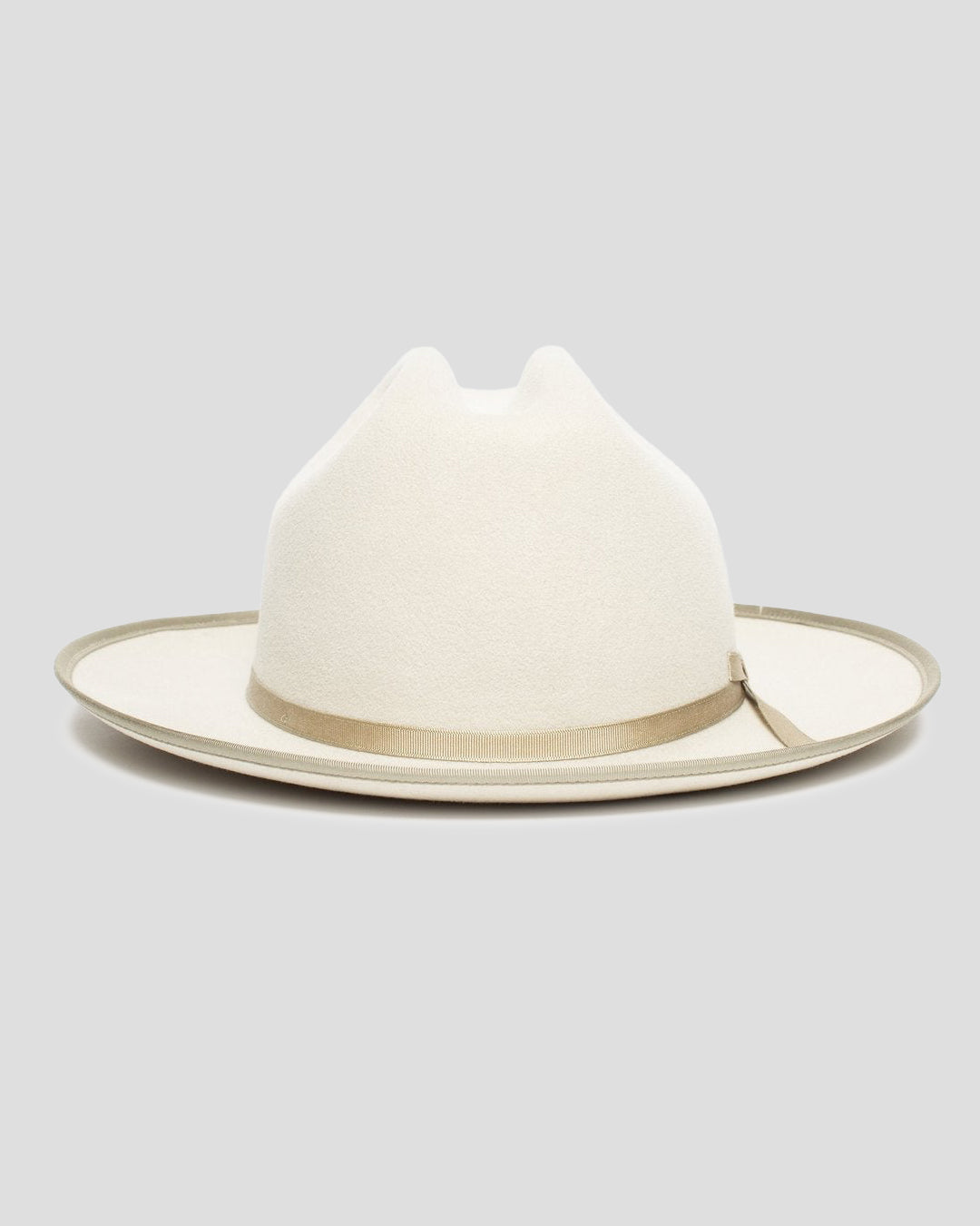 A premium Merino wool felt with a cattleman crease, tonal grosgrain trimming, and a genuine leather sweatband. Made in America, worn around the world.