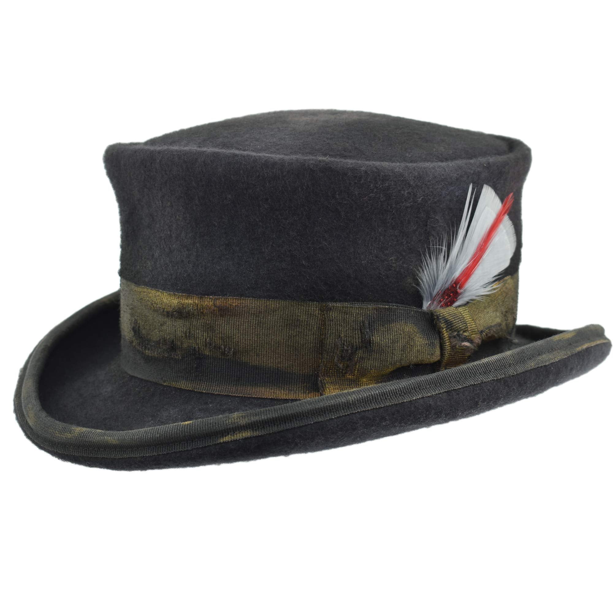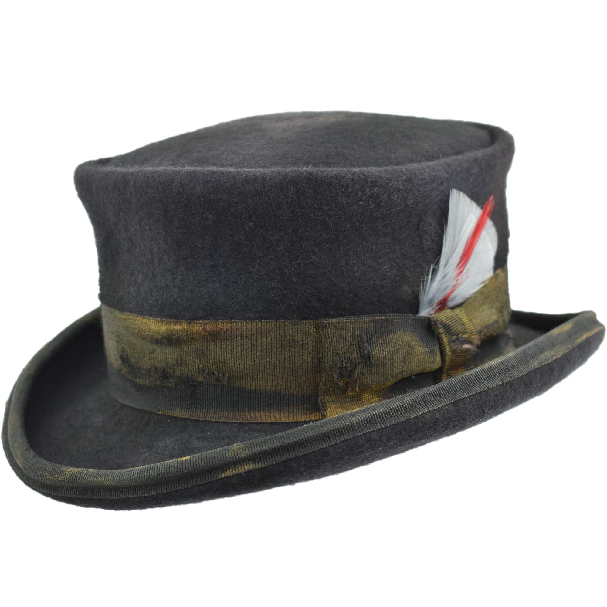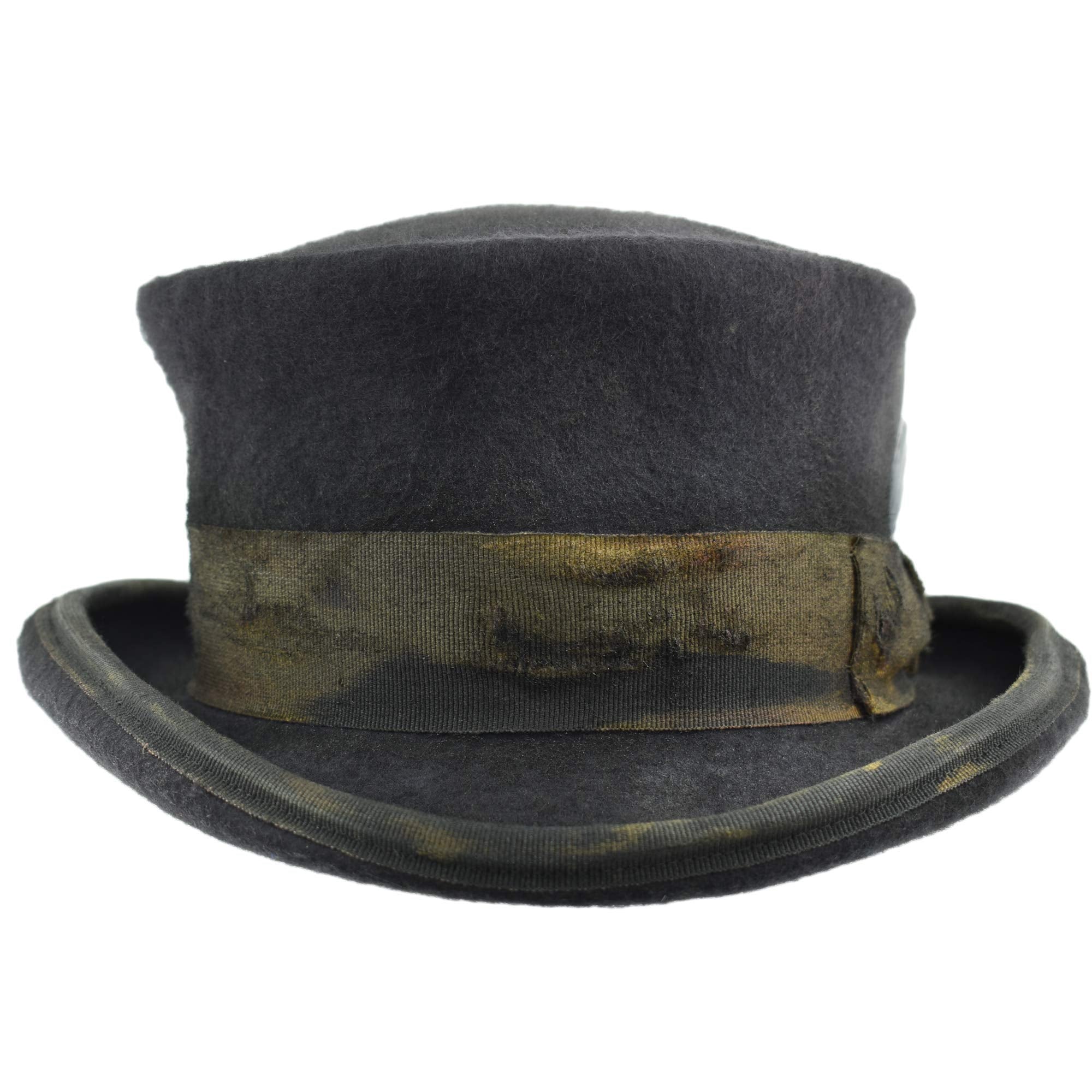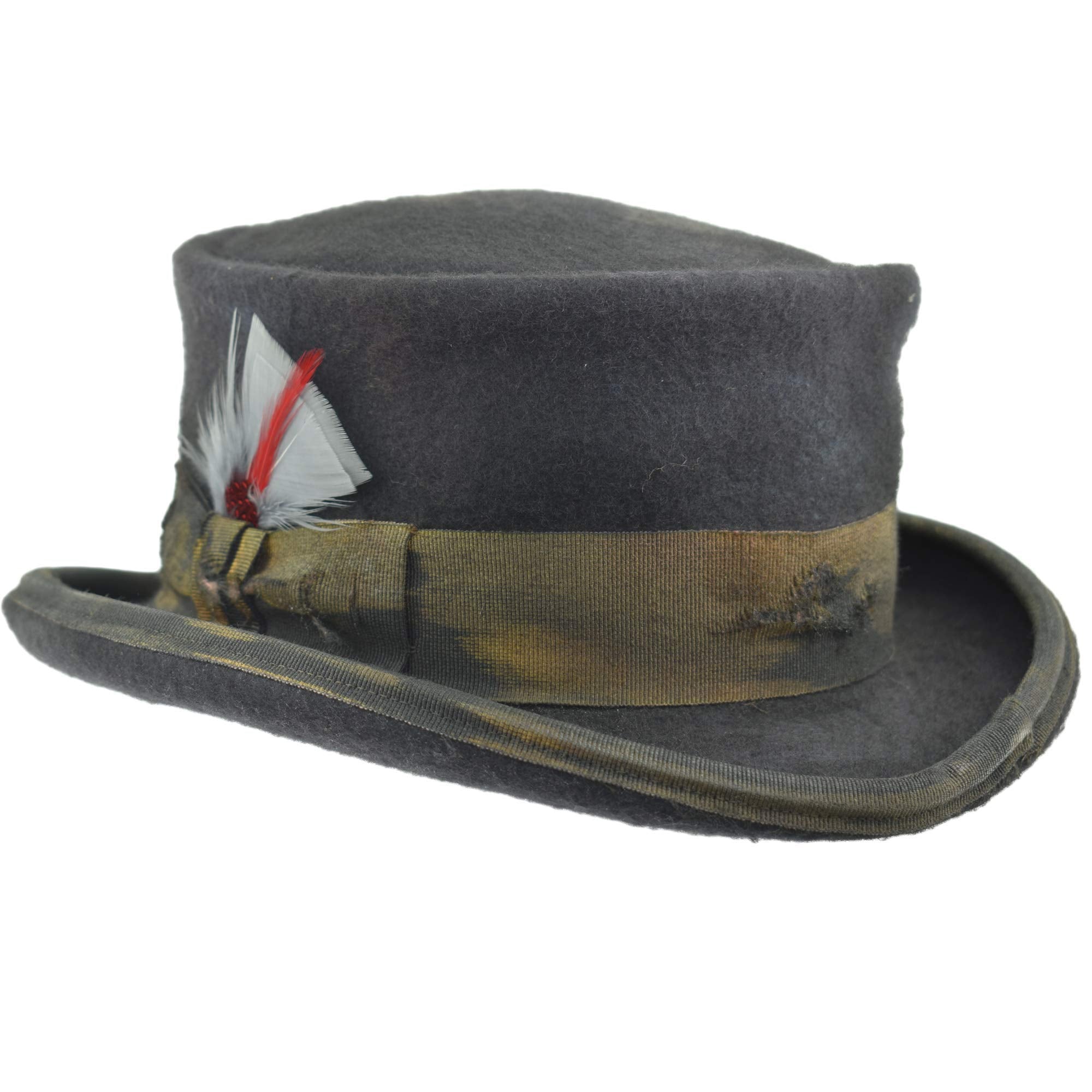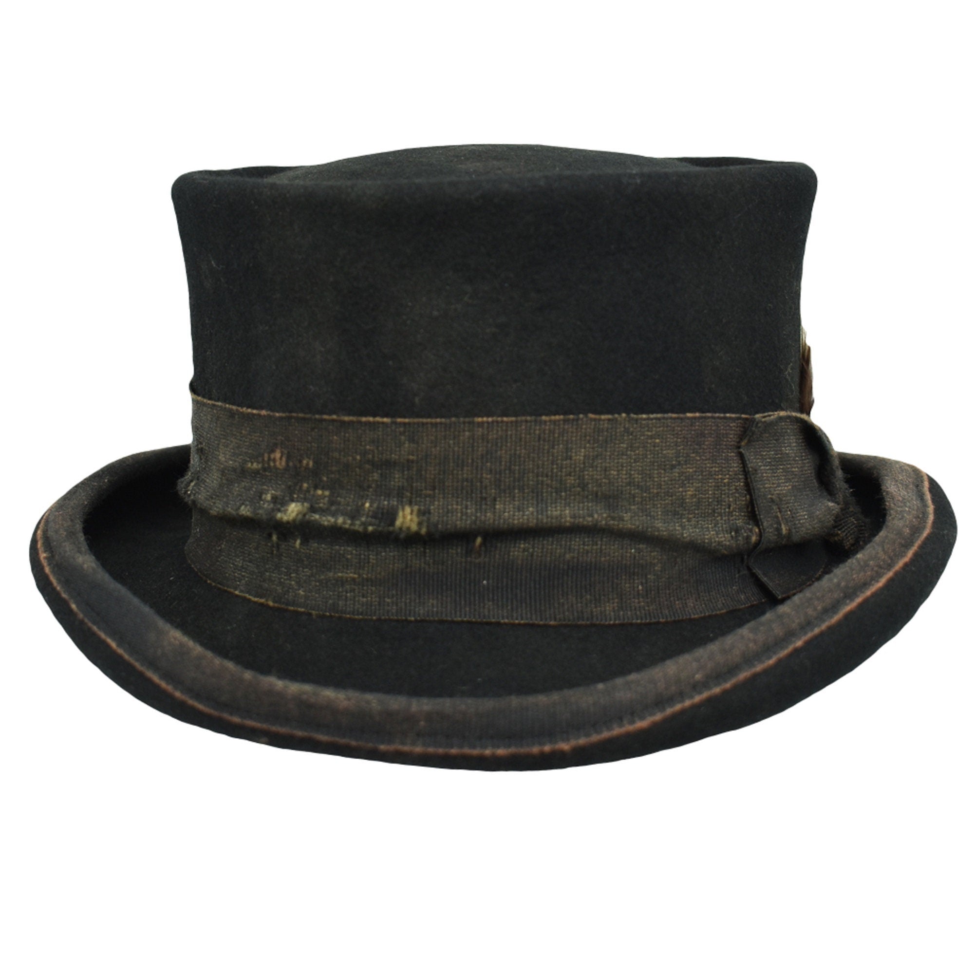 Beautiful top hat Desert Rat aged brim curled Western type, product and antiqued in our specialized laboratory. Black color.